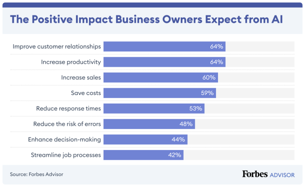AI steps in as a transformative tool, optimizing every facet of digital interactions. A staggering 64% of businesses believe that AI has the power to help increase overall productivity.